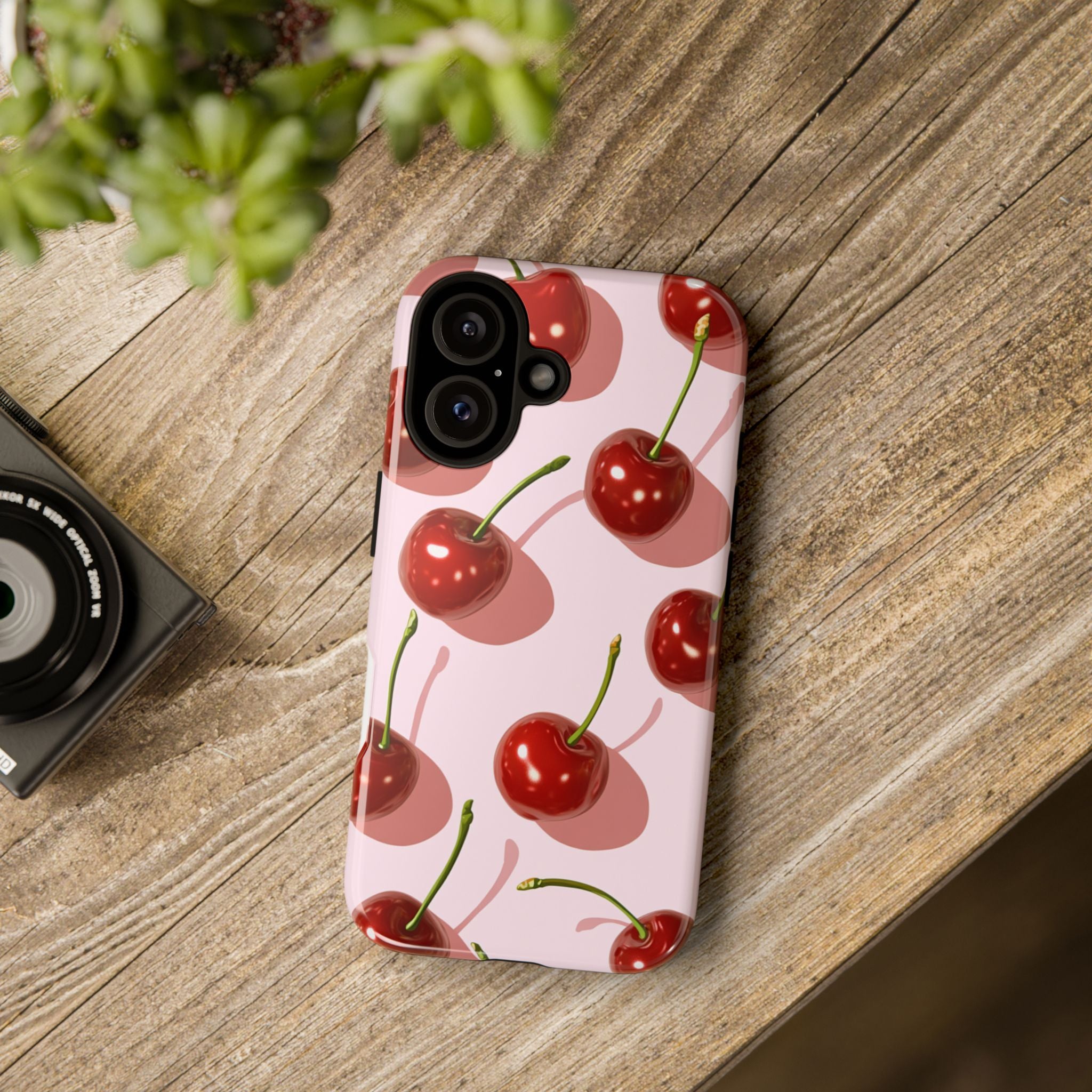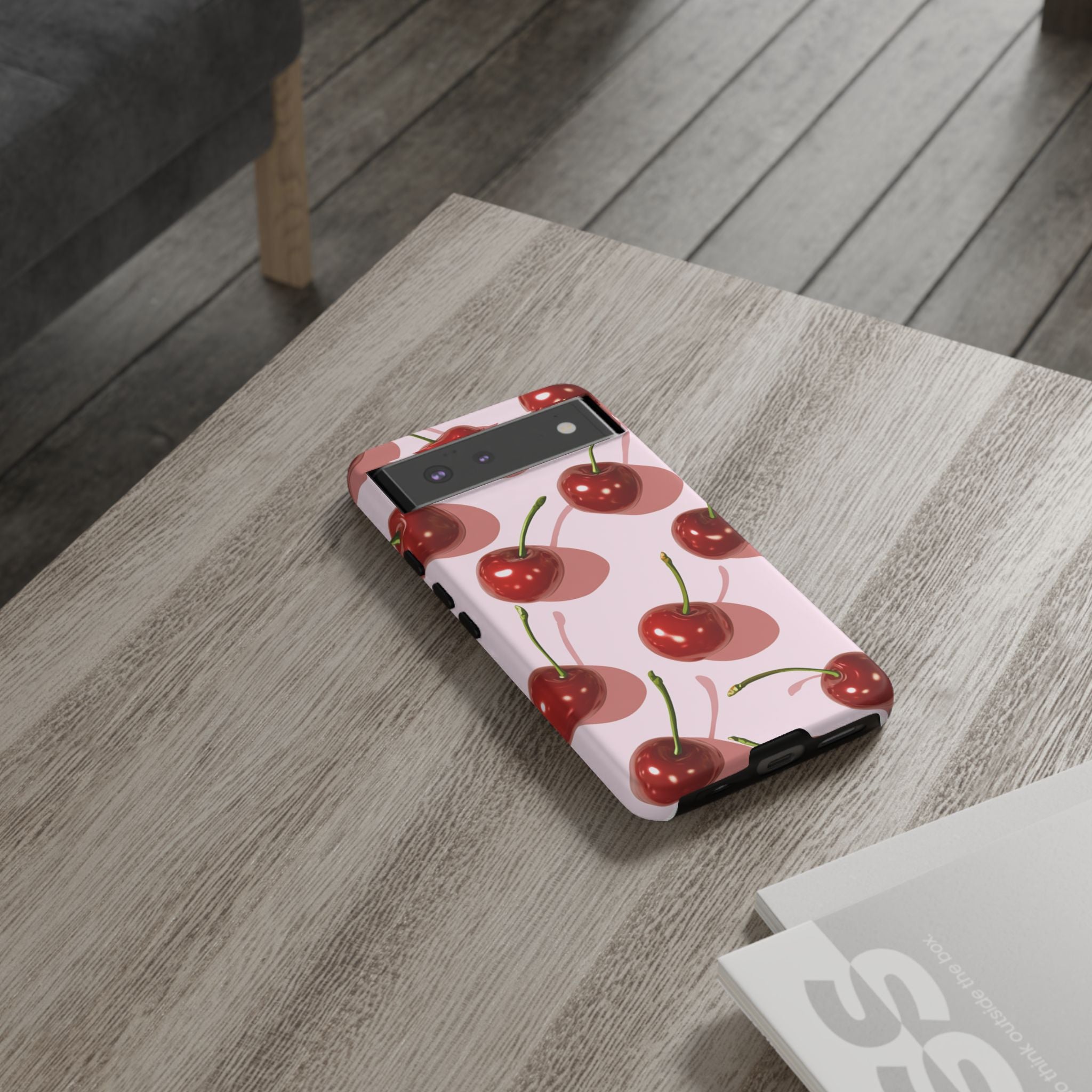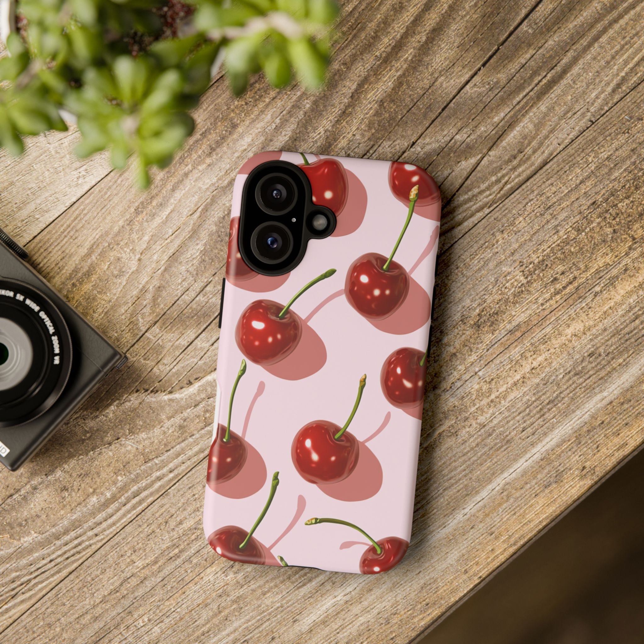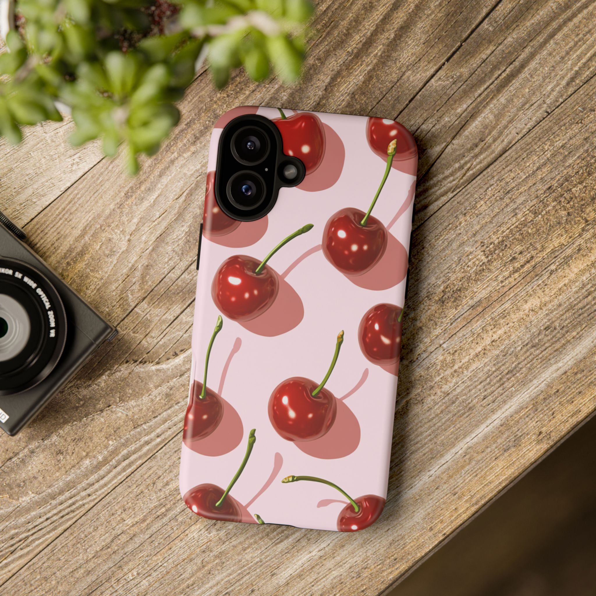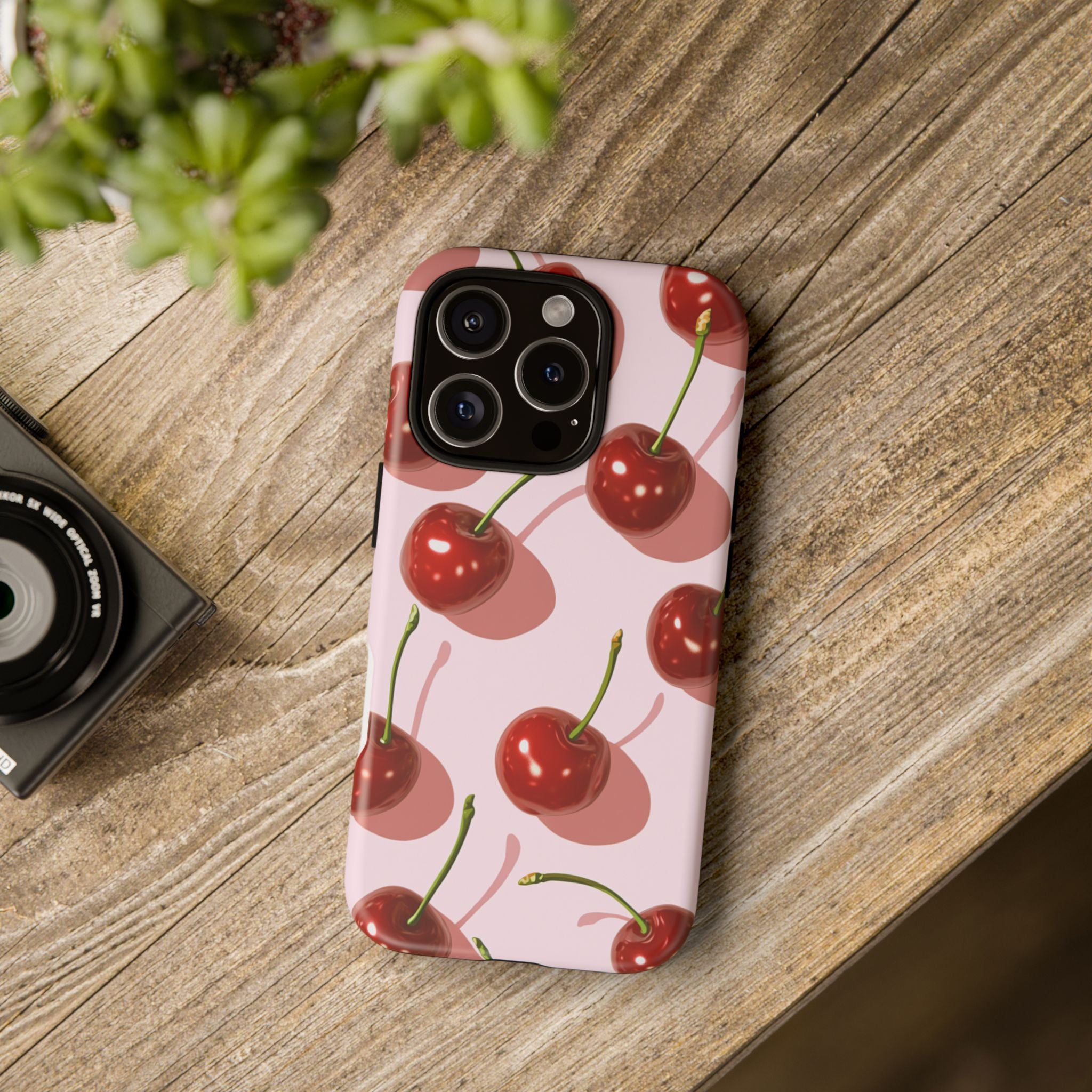 Introducing the Tough Cases, designed to blend style and protection effortlessly. This phone case showcases a playful cherry pattern that adds a pop of color to your everyday life. Whether you're at a picnic, a brunch gathering, or simply running errands, this case is a fun way to reflect your personality. It's perfect for those who appreciate unique designs and want to keep their devices safe without compromising style. Ideal for adults looking for that perfect accessory for personal use or as a thoughtful gift for birthdays, holidays, and special celebrations. Elevate your tech with the Tough Cases, where durability meets delightful design!